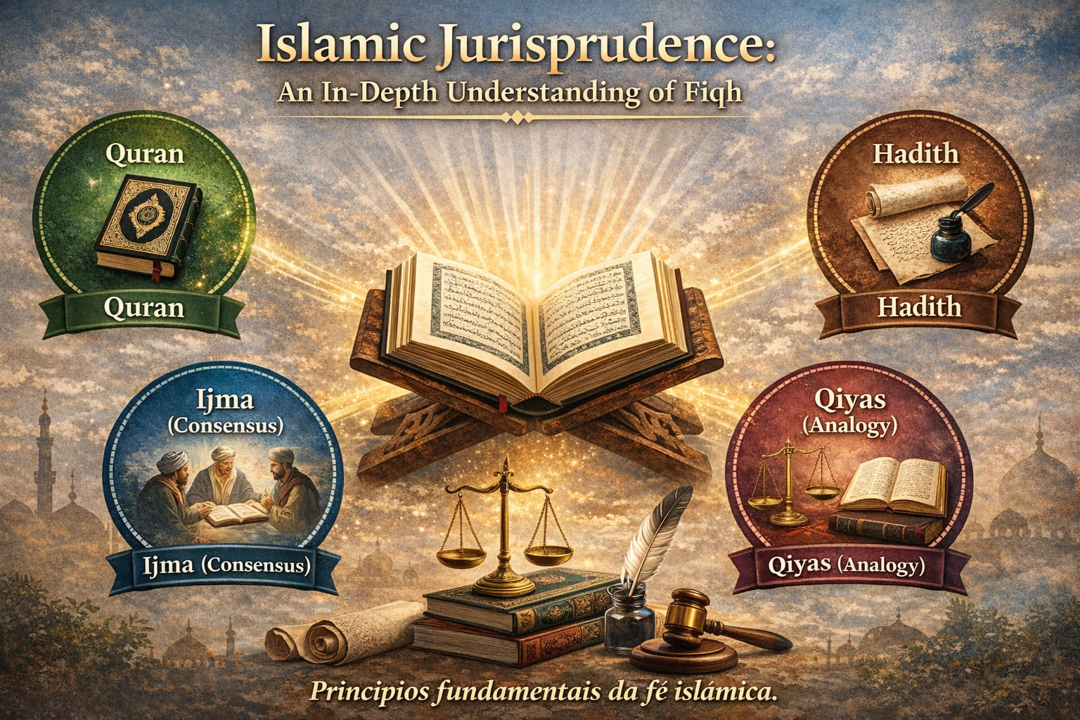 Islamic jurisprudence, or “Fiqh,” is a broad field of law within the Islamic tradition that covers every aspect of the life of a Muslim. It is based on the Quran, Hadith (sayings and actions of the Prophet Muhammad), Ijma (consensus), and Qiyas (analogy). In this article, we will explore the concept, history, types, and sources of Fiqh, along with its application and evolution through time.